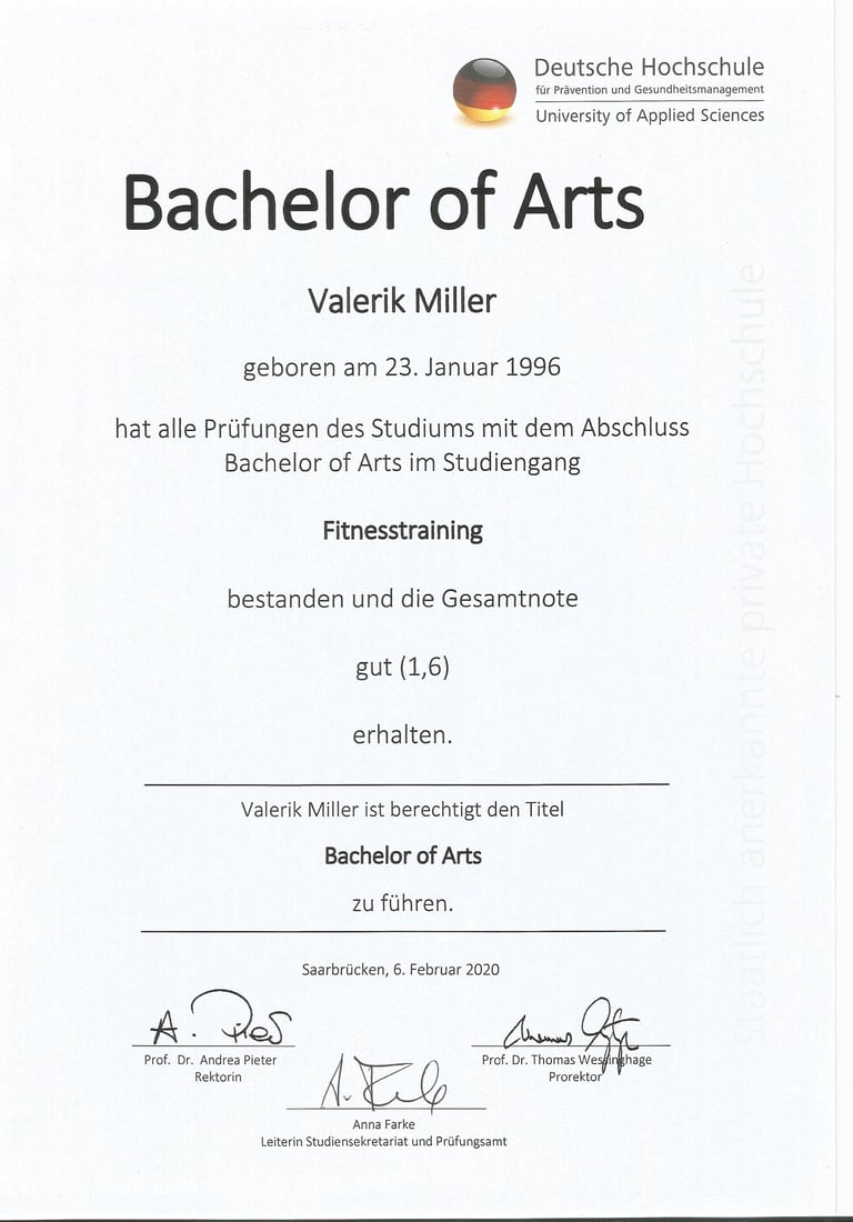 *das Studium Bachelor of Arts Fitnesstraining beinhaltet Module der Ernährungslehre, Kommunikation und Pädagogik
